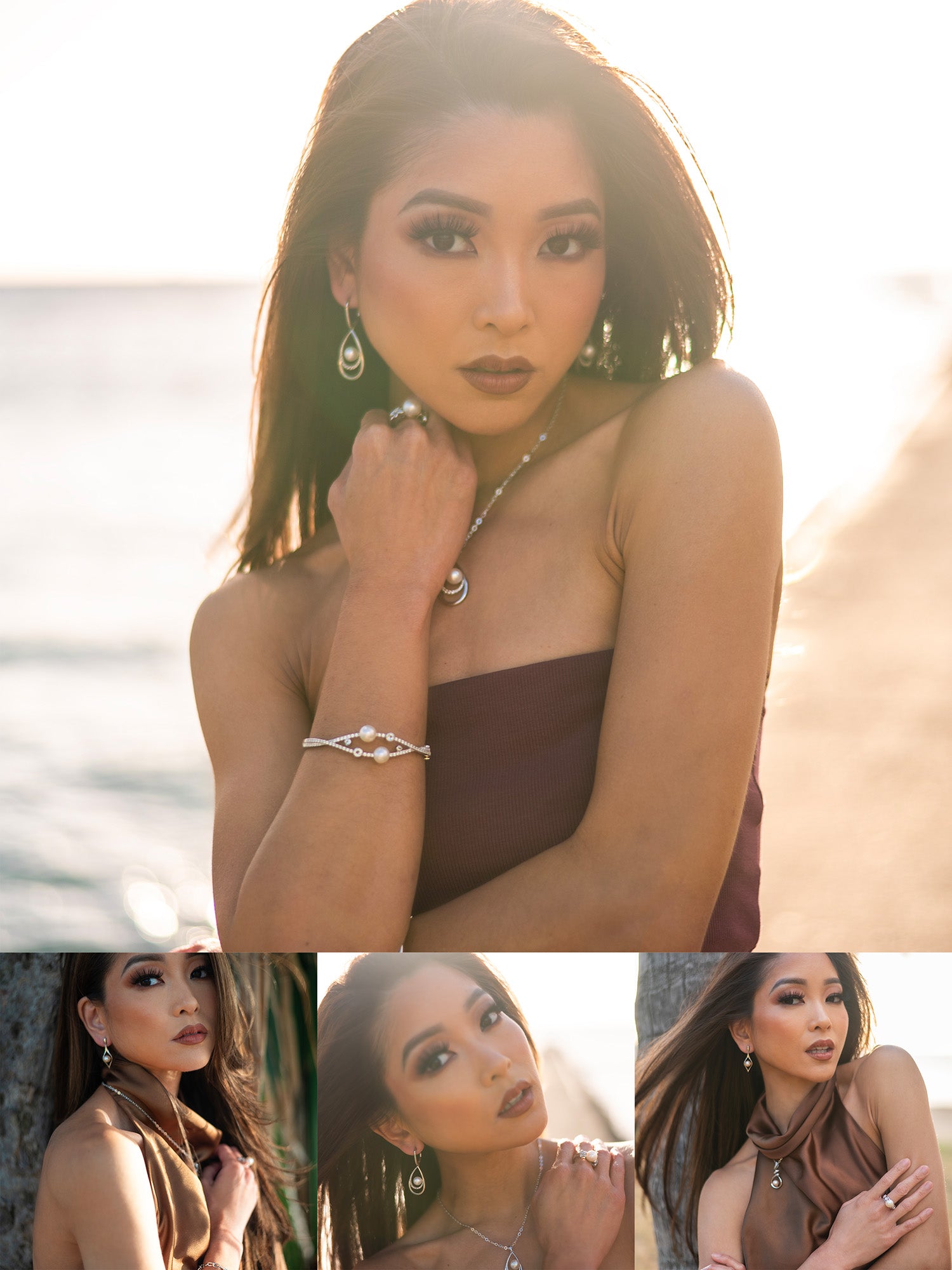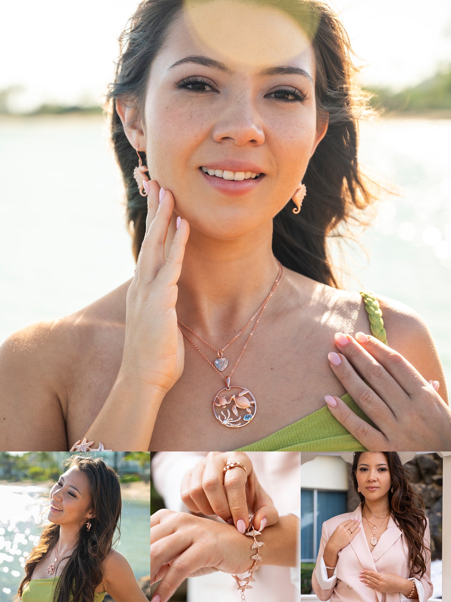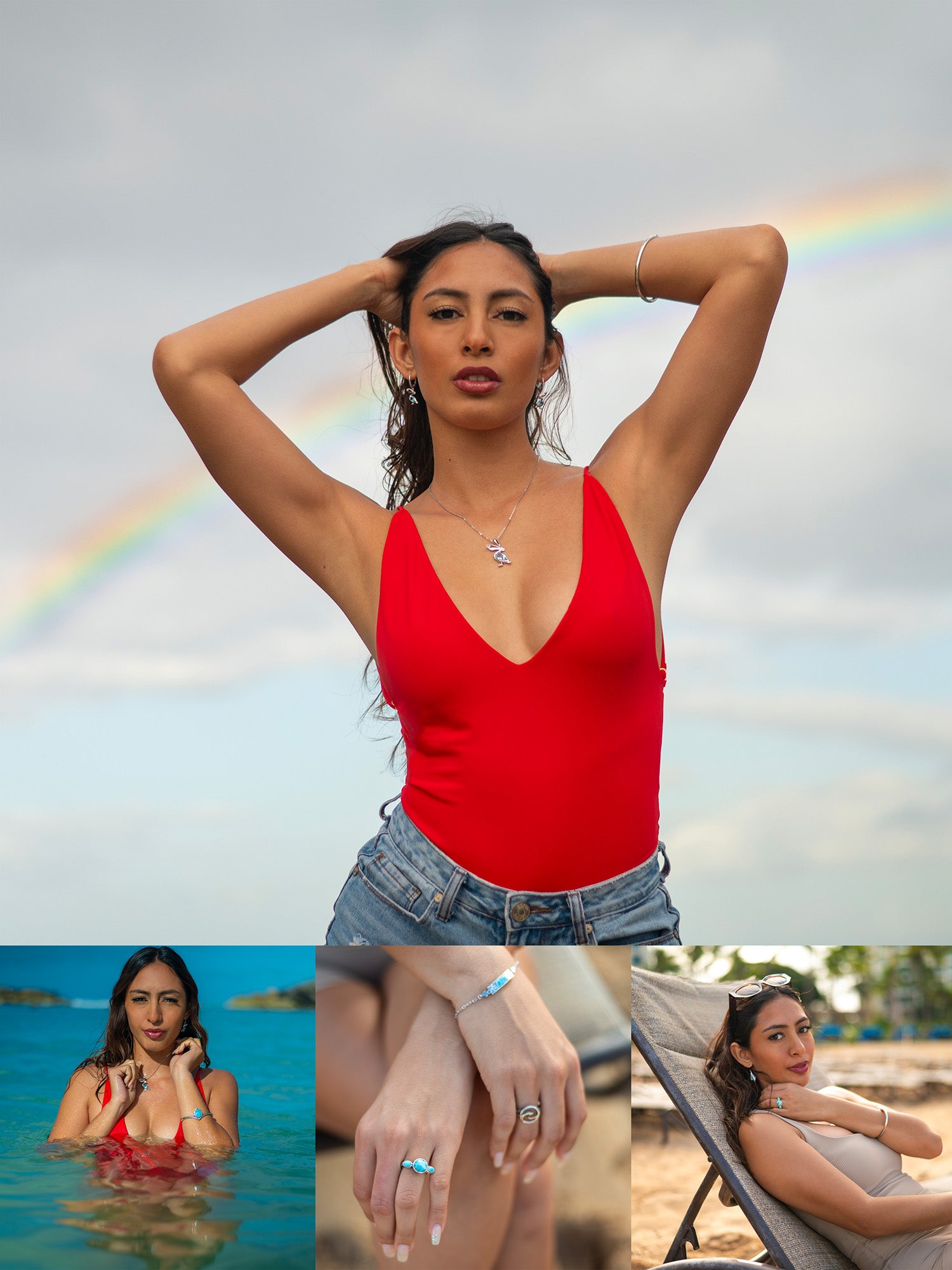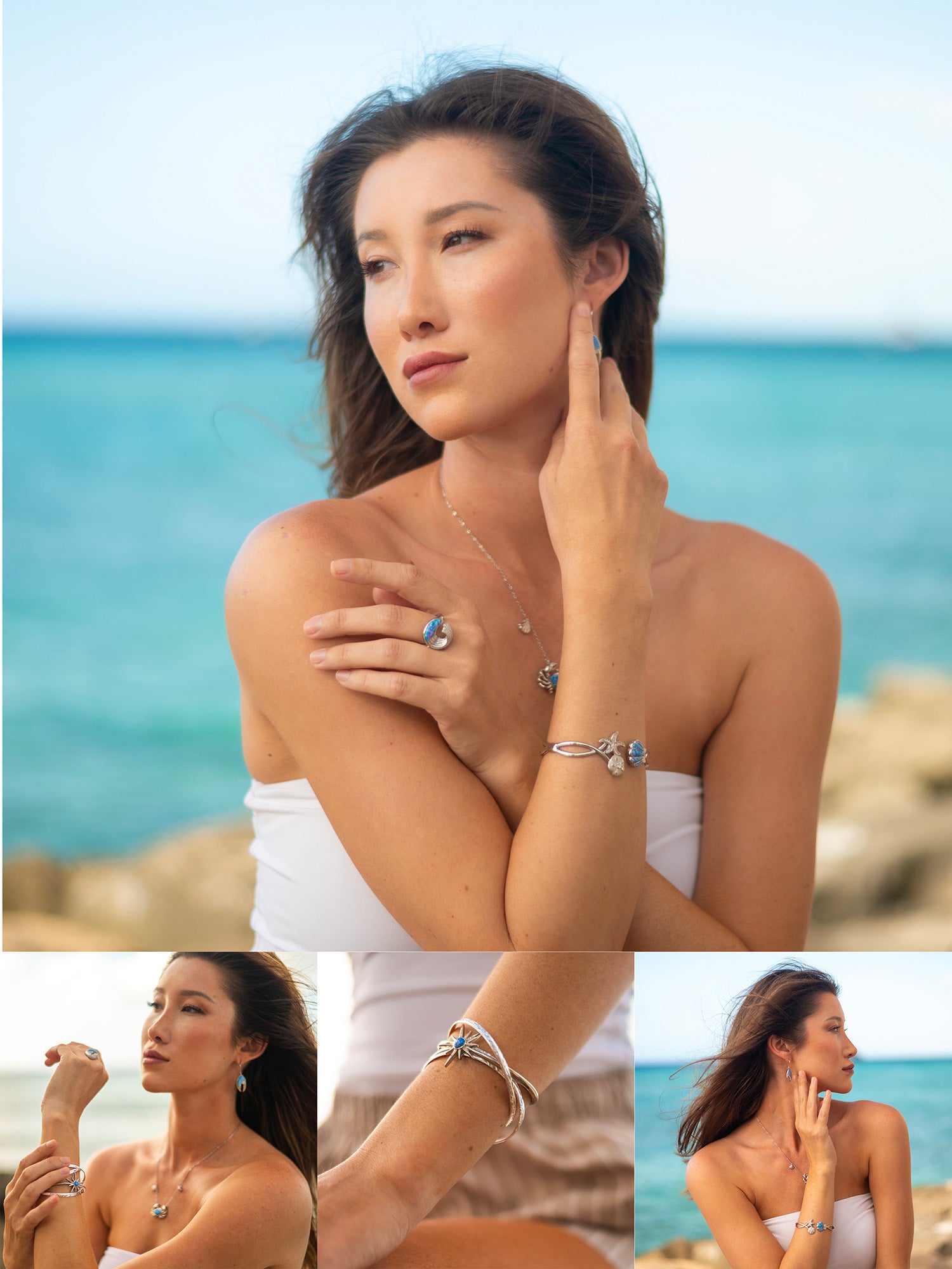 Adorned in the Lavender Opal Sea Life Collection, Kristi embodies the serene beauty and vibrant energy of Hawai‘i’s ocean life. A professional model, tennis player, and artist, Kristi reflects strength, creativity, and elegance. Her jewelry mirrors her graceful spirit and multifaceted passions.