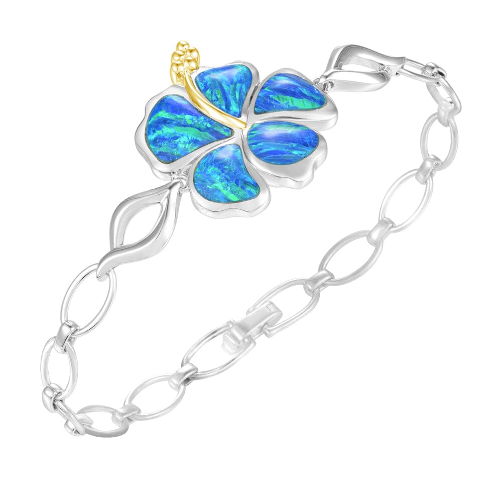 This two-tone 925 sterling silver chain bracelet with 14k yellow gold features our original hibiscus flower motif paired with our prismé opal - our next generation of sustainable opal.