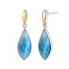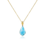 This two-tone mandorla pendant features hand-selected larimar gemstone paired with 925 sterling silver and 14k solid yellow gold.