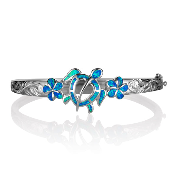 Questions About 925 Sterling Silver Paradise Opal Honu & Plumeria Bangle?