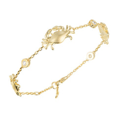 This 14K solid yellow gold pendant features our original blue crab motif.