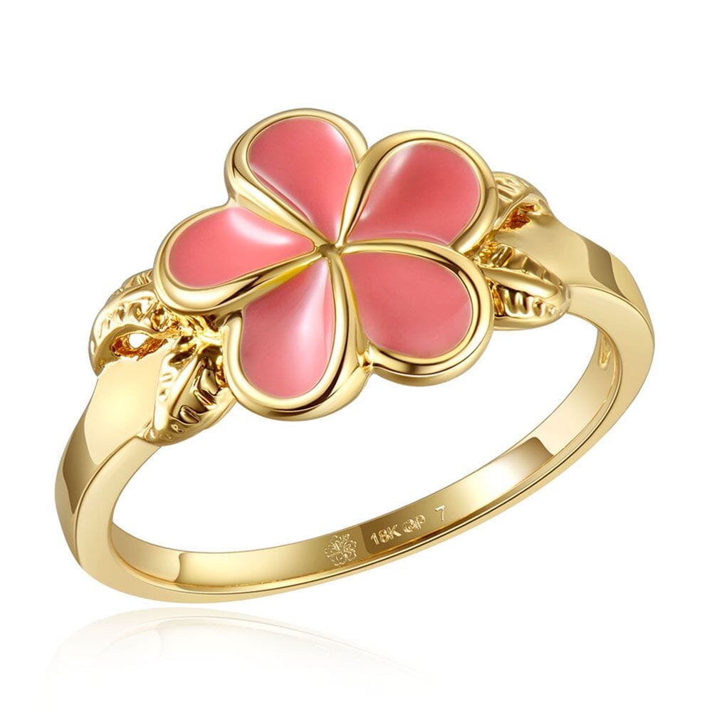 Questions About 18K Gold Plated Pink Coral Grand Plumeria Ring?