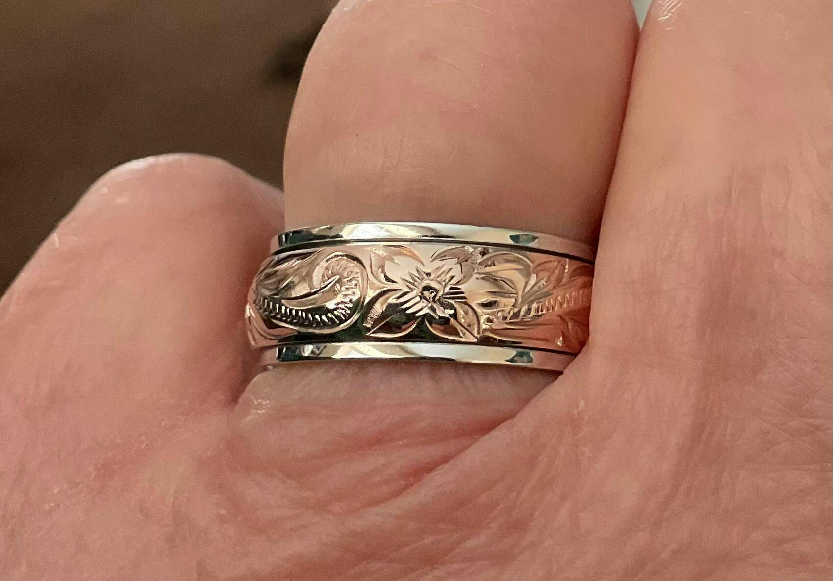 My husband got me the rose gold ring. It’s a spinner so I’m constantly seeing a different part of the beautiful plumeria Hawaiian design. It’s bright and happy and reminds me of Maui.